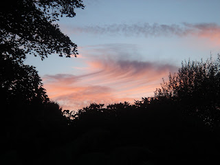 Thursday was one of the sunniest we have seen for some weeks (unlike the southern half of the country which seems to be perpetually sunny.) We had solid, clear blue skies which I glimpsed all day through the office window. It promised to be a beautiful evening and it was. I sat in the garden with some bread and cheese and a glass of wine and relaxed. Unfortunately wine has a rapid soporific effect on me and I was in bed for 9pm. Not before I had photographed the colours of the sunset sky though (see bottom of this.) I always used to wonder if I could end up drinking too much but now the question is can I drink enough without falling asleep like a dotard. Probably not and there is some small comfort. Another healthy addition and now that smoking is banned in public enclosed spaces (including work) I am smoking significantly less too. Who’d have thought that I would have had a healthy decline into old age? It’s going to be a quiet weekend i think. Everyone is working so I shall sit and read a book in the garden if the weather allows. Still off to Devon in a little less than two weeks...! Hope you’re having a good weekend. I created another blog to put a continuing story on so I’ll see how that goes.